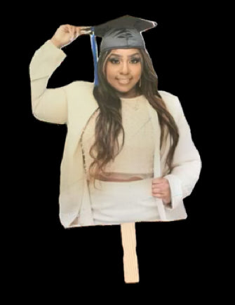 Big Head is the perfect fan for those who need a large, custom board cutout with a sturdy wood handle. This fan boasts an impressive size and a professional design, making it perfect for sport events, graduation and other event to show off your child. This product only takes one photo. Please email all images to phenomenalpcreations.com or (850) 270-8910.